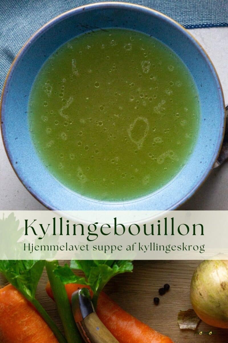 Jeg forsøger så vidt muligt altid at undgå mad­spild. Ved at koge suppe på kyllingeskro­get, udnyttes hele kyllin­gen. Og jeg elsker at kunne lave mad med hjem­melavet bouil­lon frem for en suppeterning.